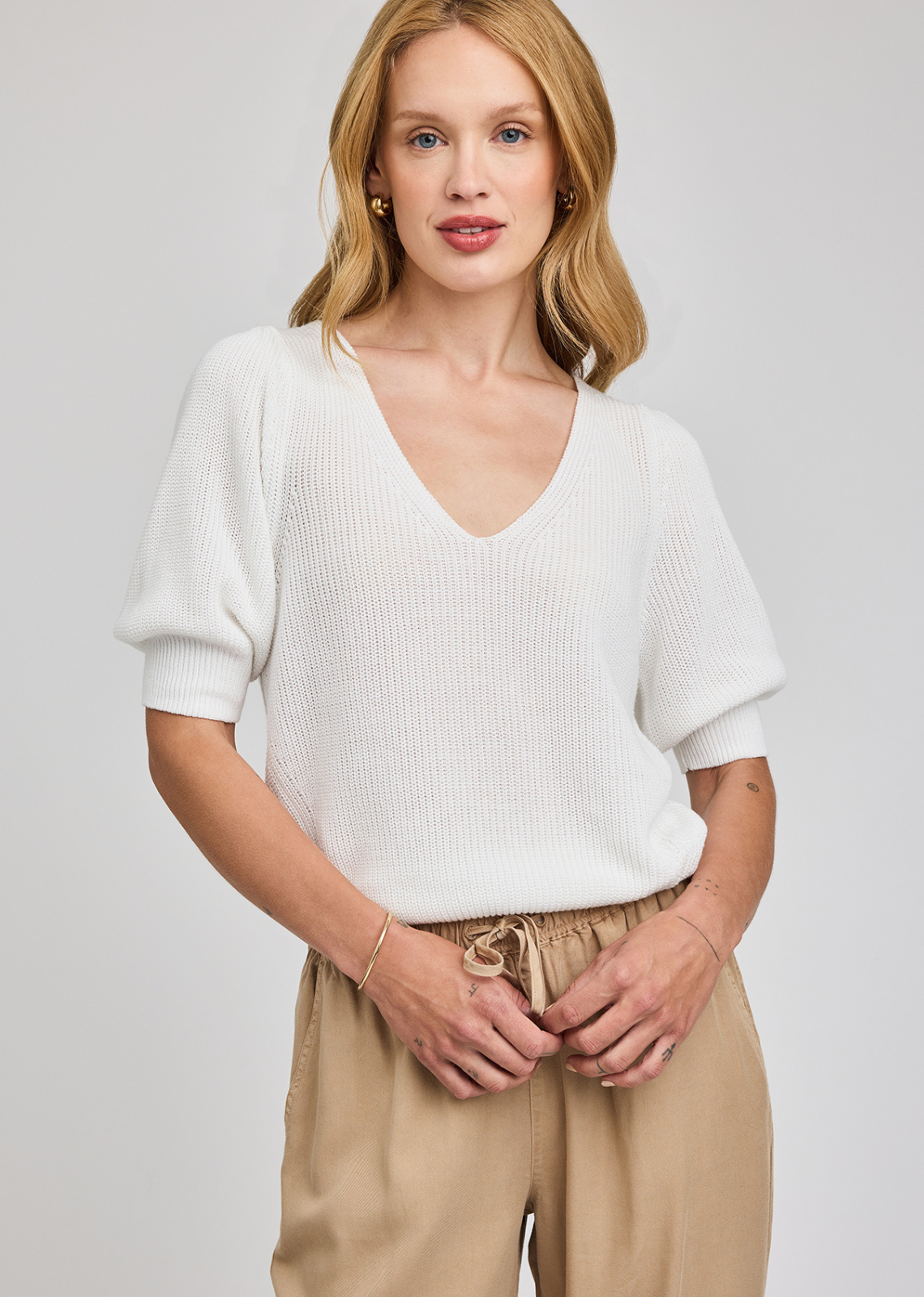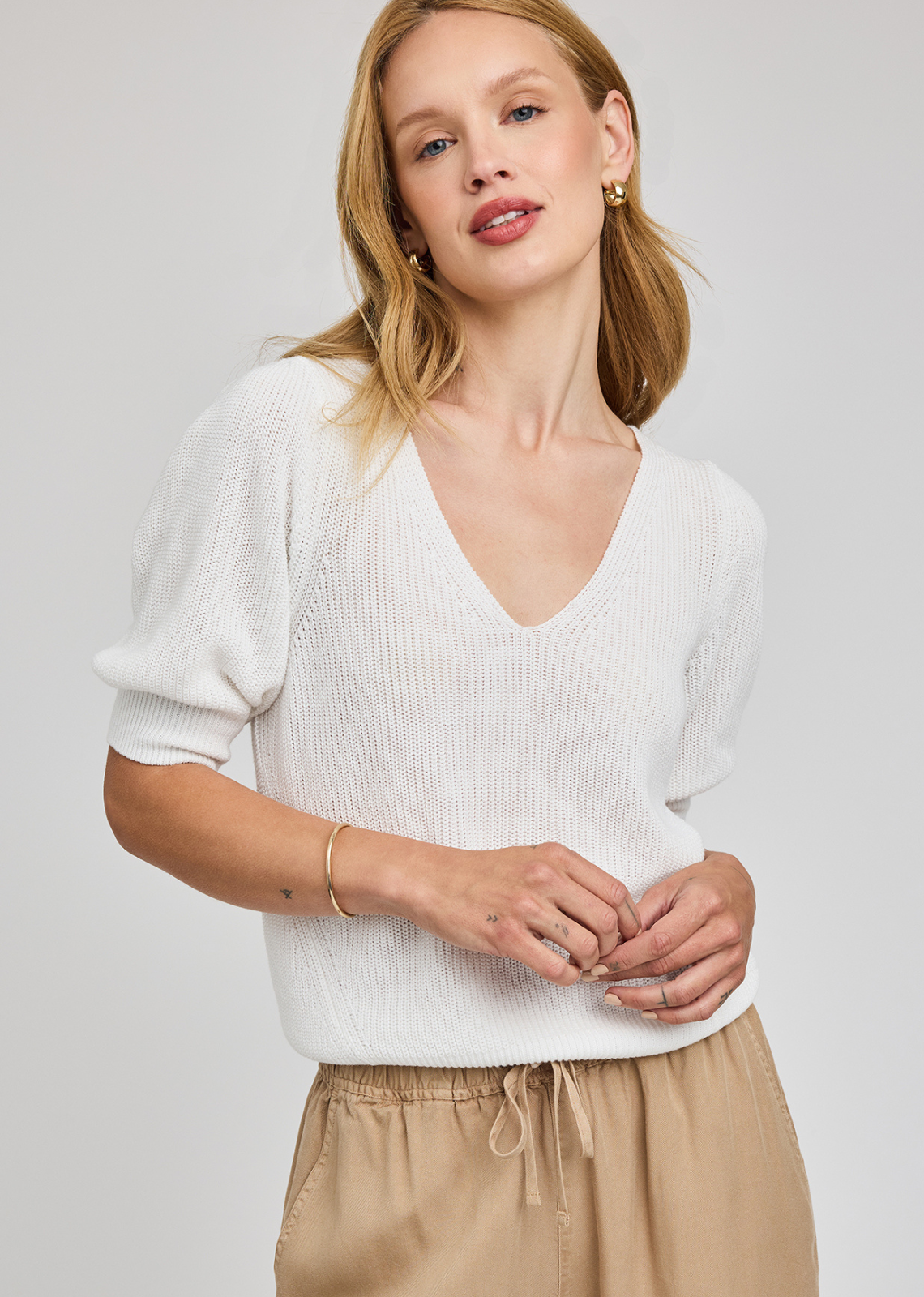 Made of a super soft yarn, the Phoebe sweater features a v-neckline and puff sleeves. It’s effortlessly feminine and perfect for everyday wear.