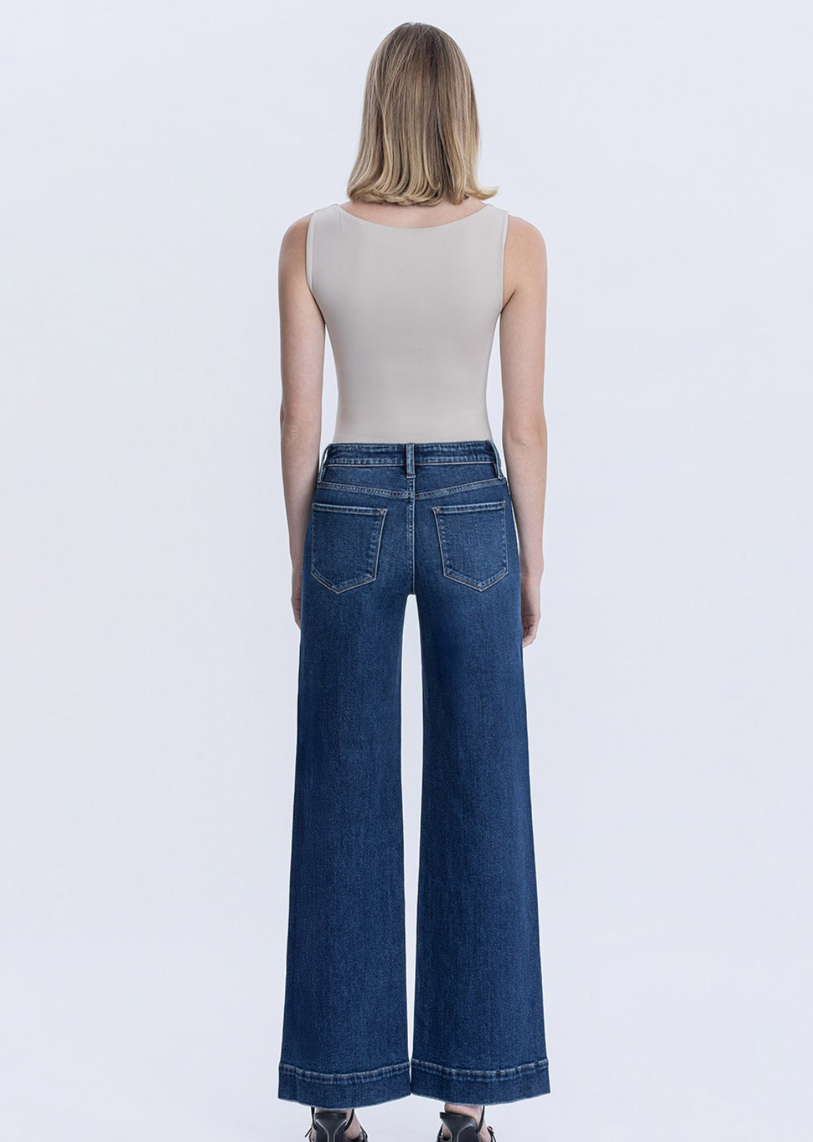 Description: This is a vintage inspired High-rise, super wide leg that makes a statement. Made with Nimes, our traditional denim with limited stretch gives you...