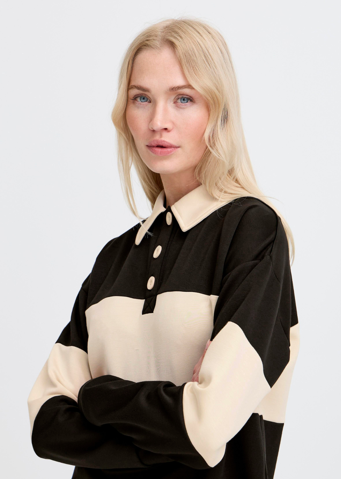 Description: This rugby sweater for women features a relaxed fit, classic polo collar, and button placket. Long sleeves and soft fabric blend offer all-day comfort,...