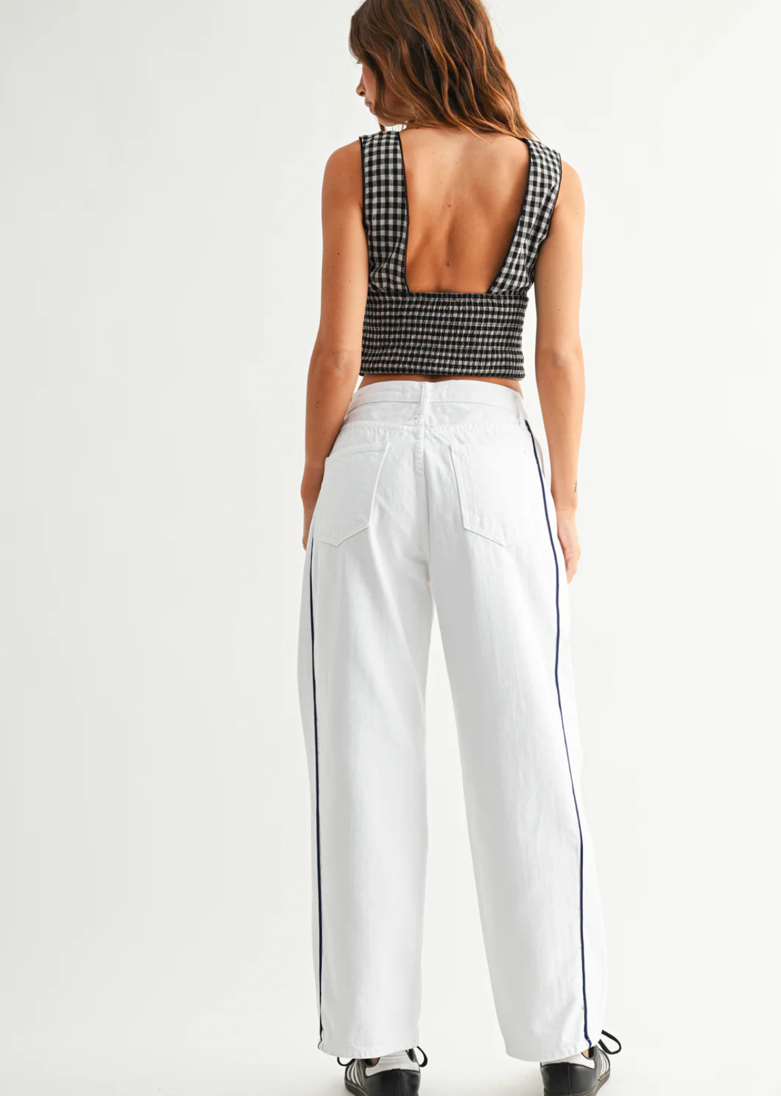 Description: These high-rise slouchy barrel straight leg pants offer a trendy, relaxed fit for a comfy, casual look. Perfect for effortless style and all day...
