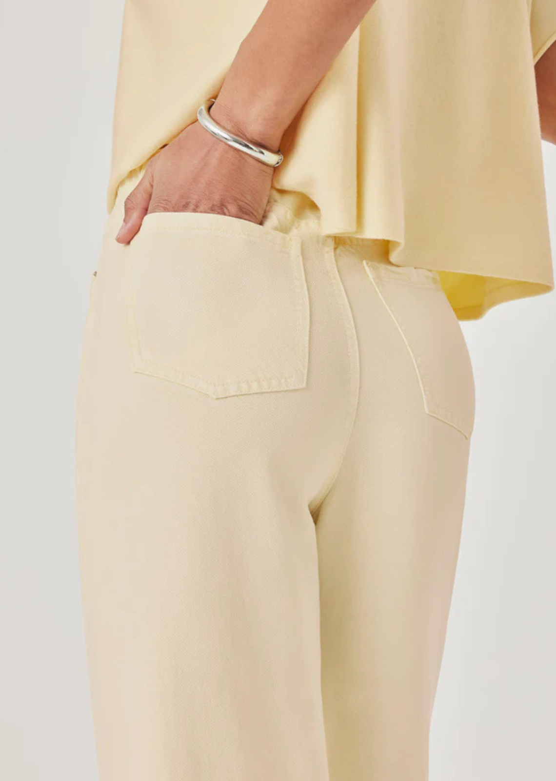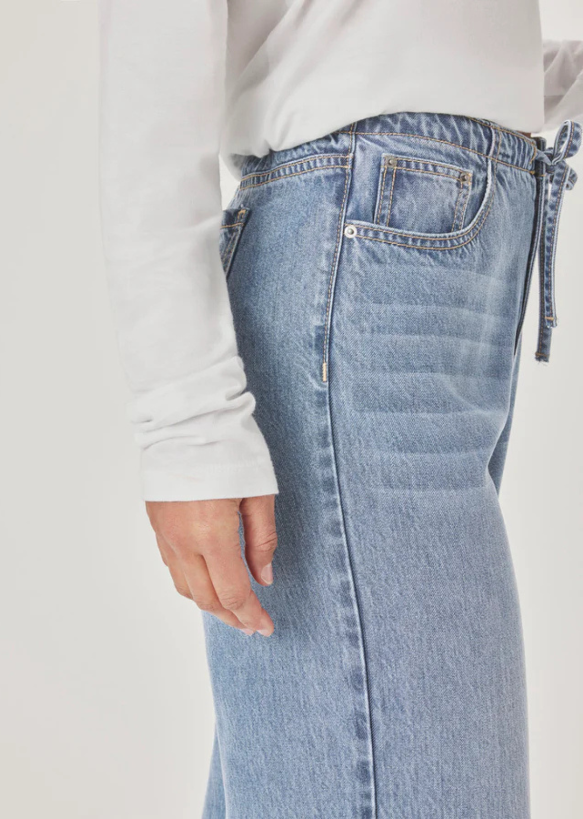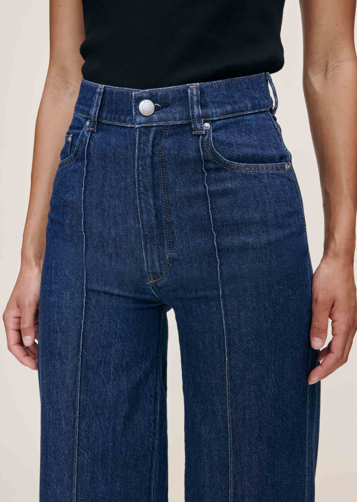 Description: Hyacinth is a high-rise wide crop with a 27" inseam, designed with a clean, balanced silhouette. Additional Information: Delfi Blue is a medium wash...