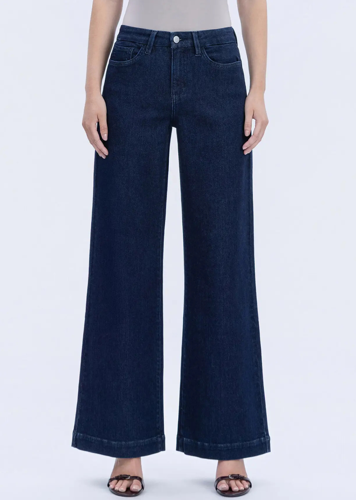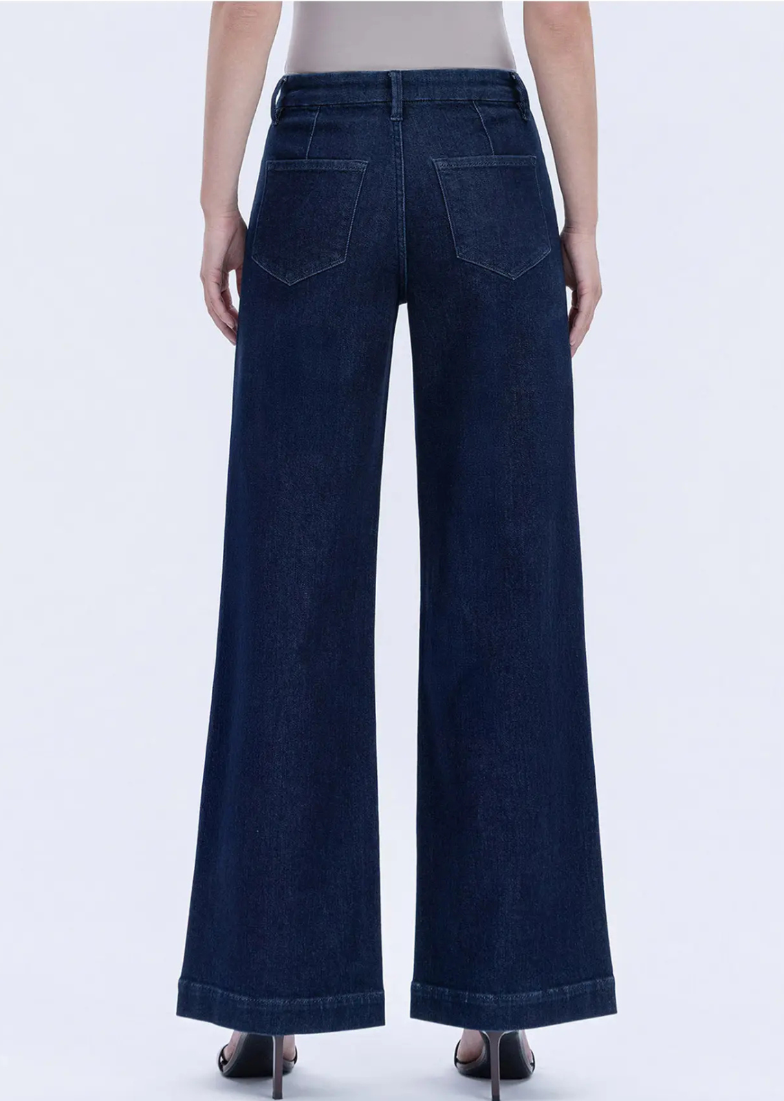 Description: These high rise wide leg jeans combine comfort and clean design with standout details. Featuring slanted pockets, a secure double button closure, and a...