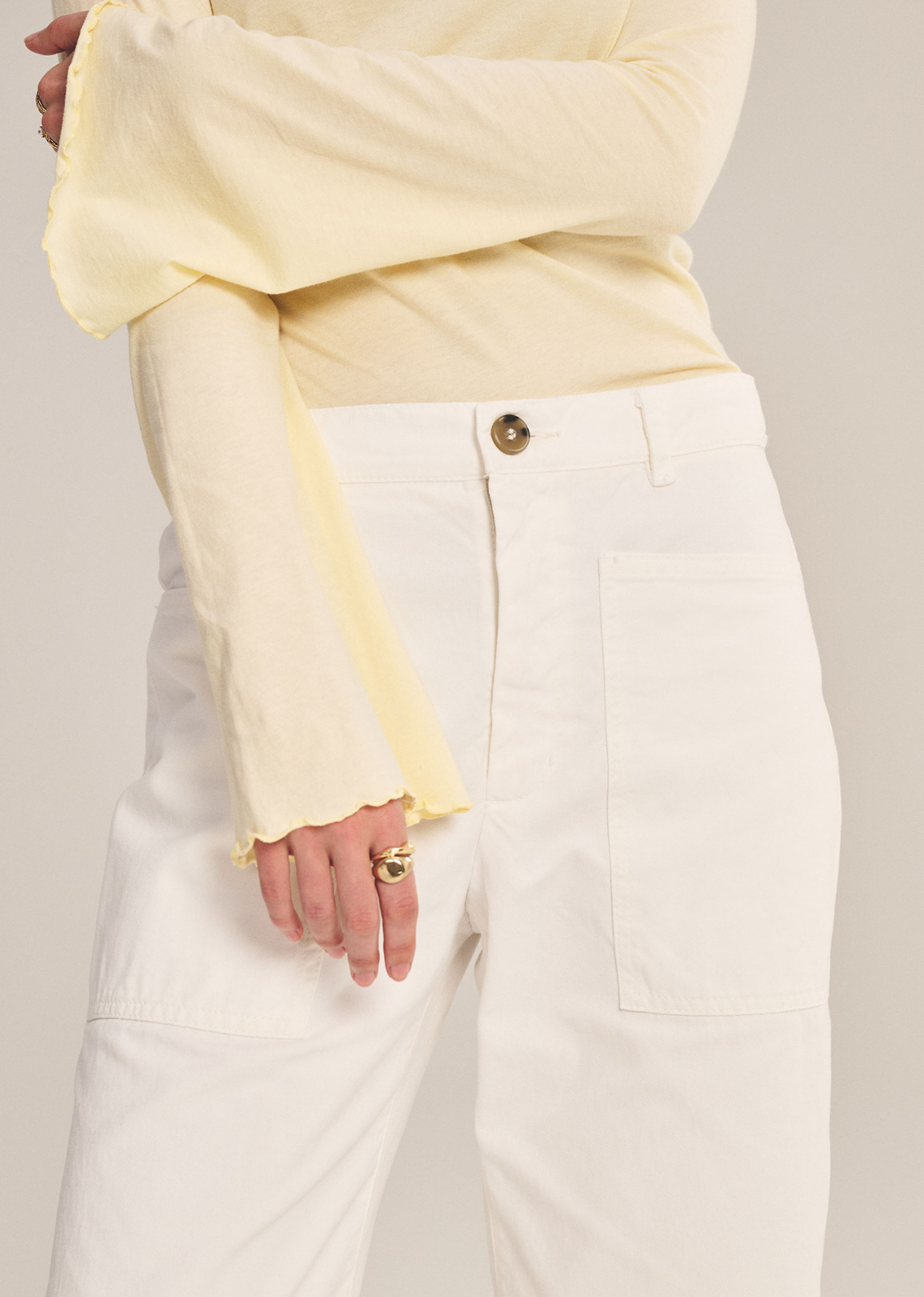 Description: Relaxed boyfriend fit with an easy leg and functional utility pockets. Additional Information: Ecru is a warm off-white with a natural, soft finish. Comfort...
