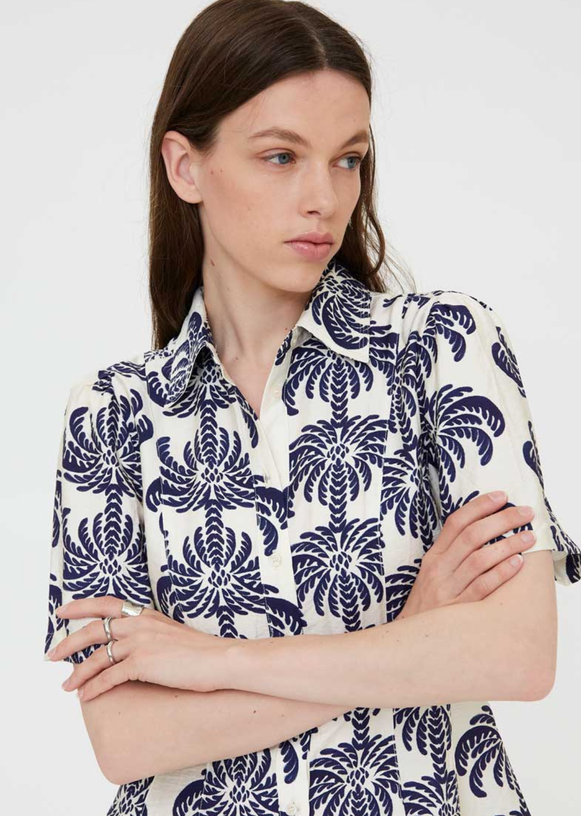 Description: Faye Shirt Dress is a mini-length, button down shirt dress with a pointed collar, high-low rounded shirt tail hem and side seam pockets. Lake House...