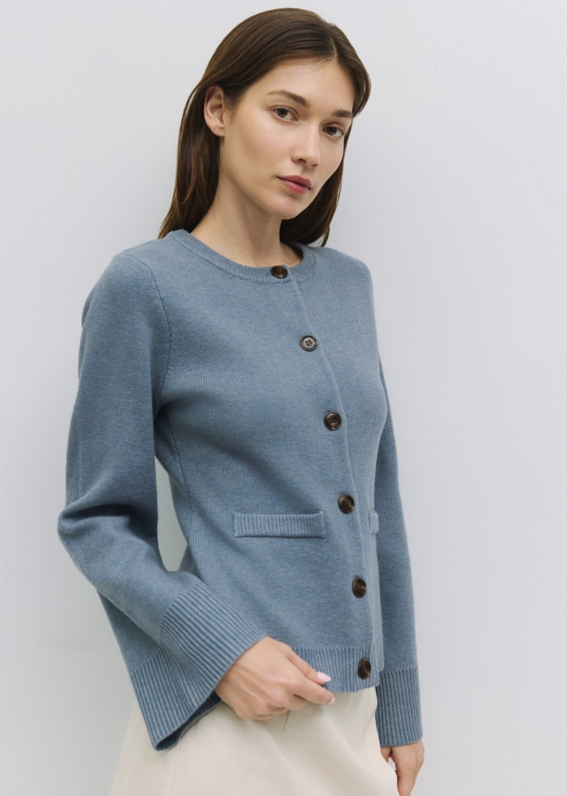 Description: The Tyler Cardigan features slightly flared sleeves and ribbed cuffs that give it the perfect balance between style and warmth. The faux welt pockets...