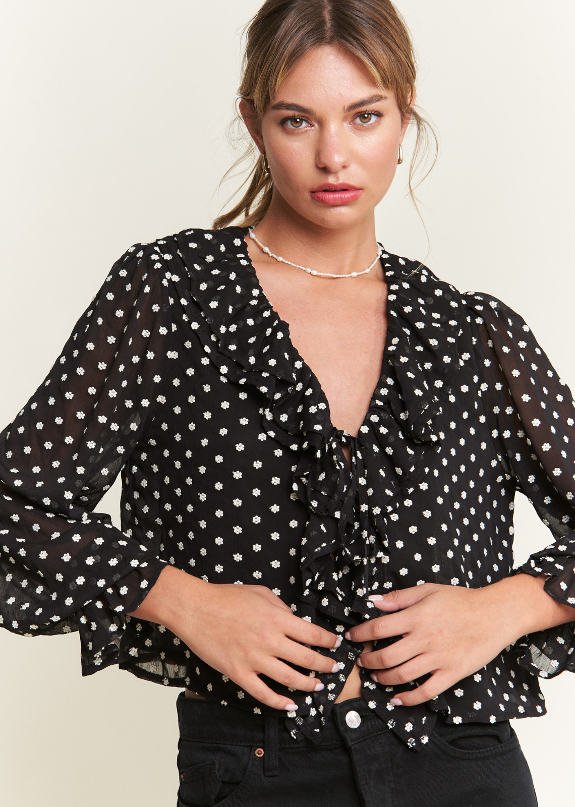 Description: WRINKLED PLEATS RUFFLE TOP Additional Information: 97% Polyester 3% Spandex 43060