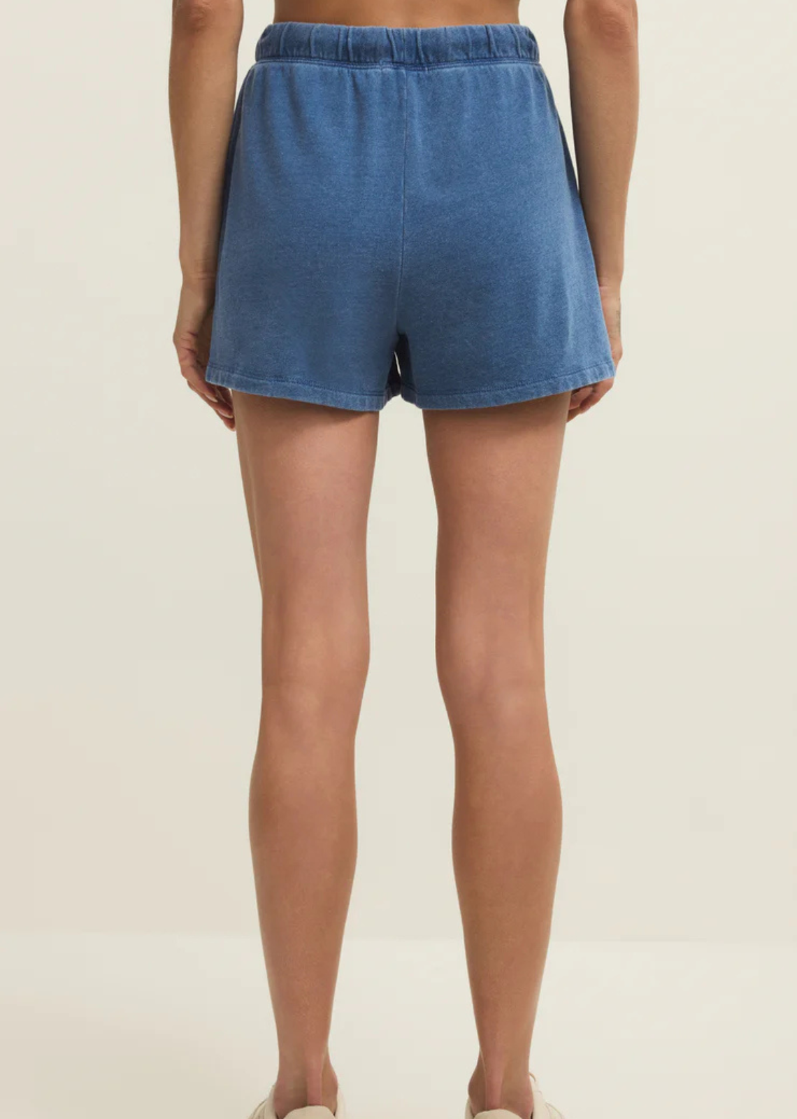 Description: Kicked-back and cool, this knit denim French terry short has a lived-in look and feel. The contrast drawcord at the high-rise waist gives a...