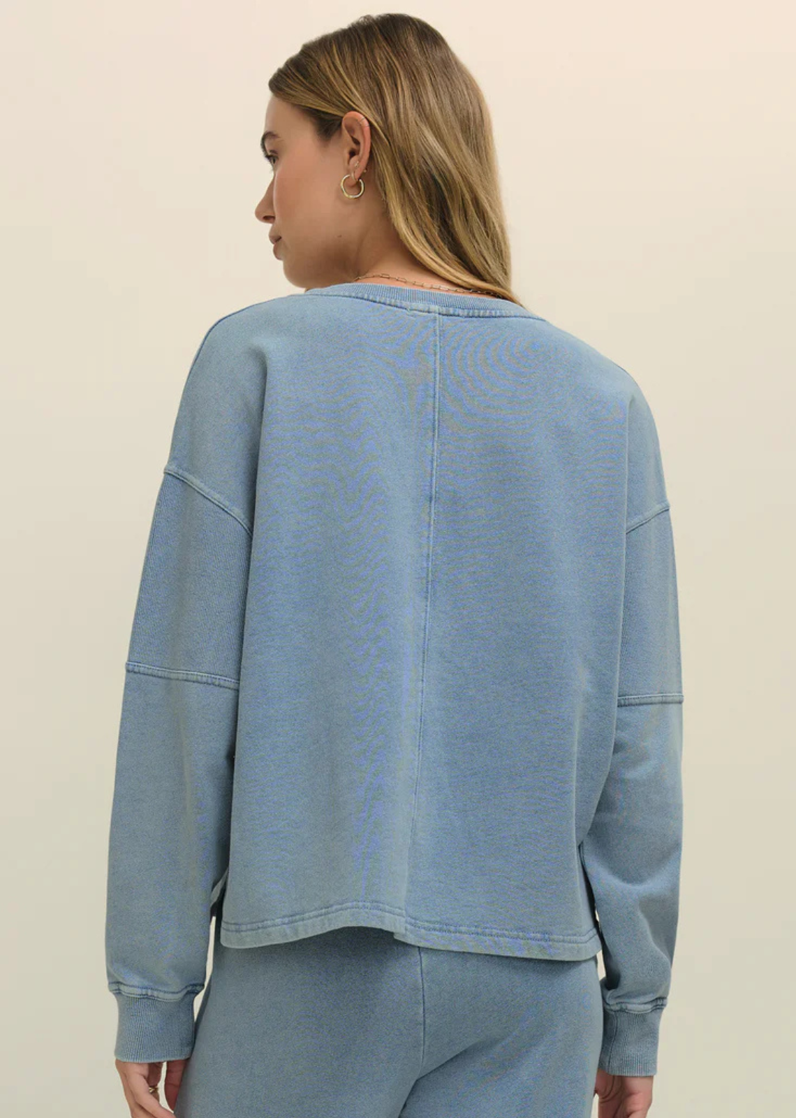 Description: Soft knit denim gives this v-neck sweatshirt its laid-back edge. The mineral wash adds a perfectly lived-in look that only gets better with wear....