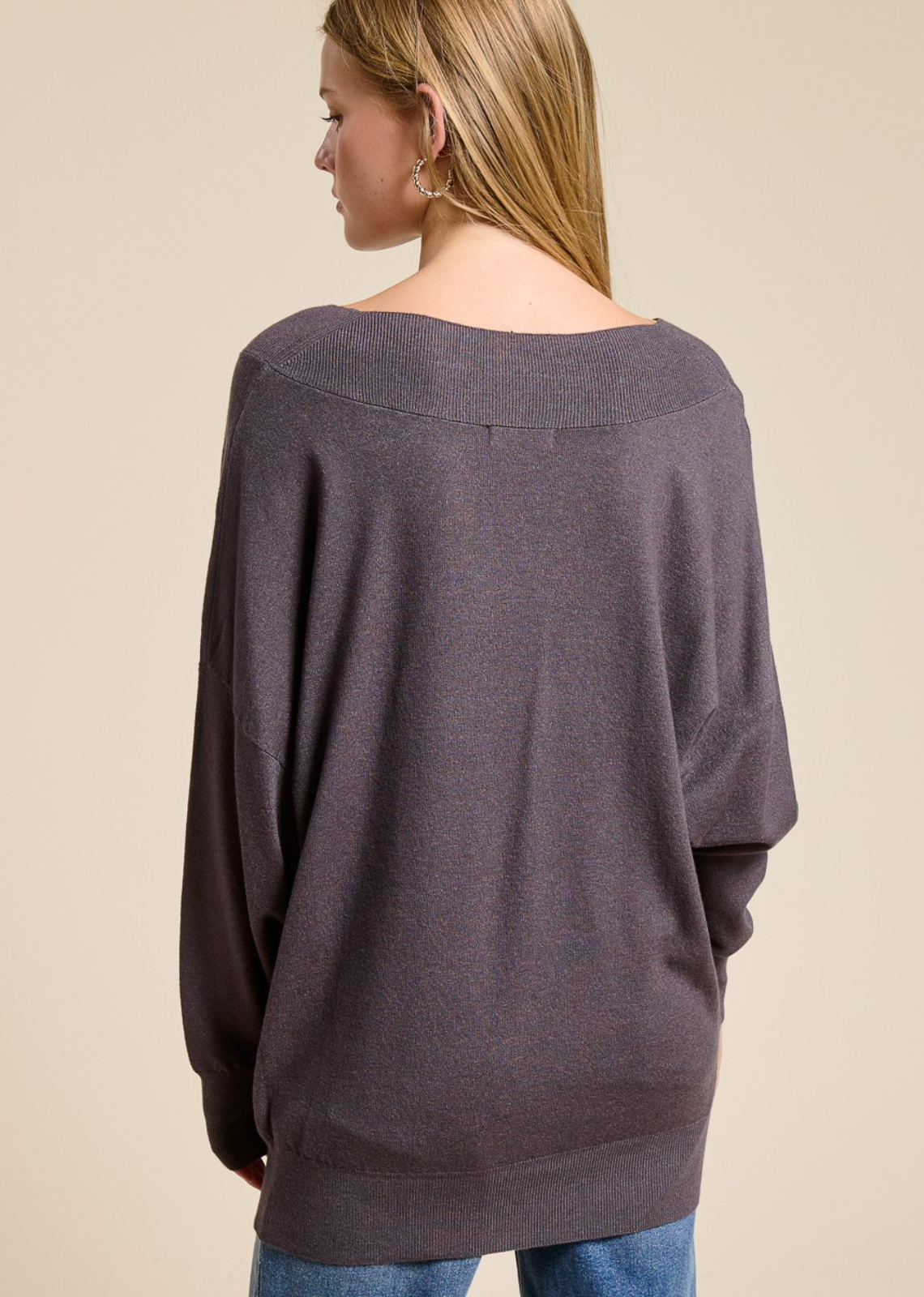 Description: Obsessed with this slightly oversized off the shoulder knit! Dress up or down easily! Additional Information: 74% Acrylic 22% polyester 4% Spandex Hand Wash...