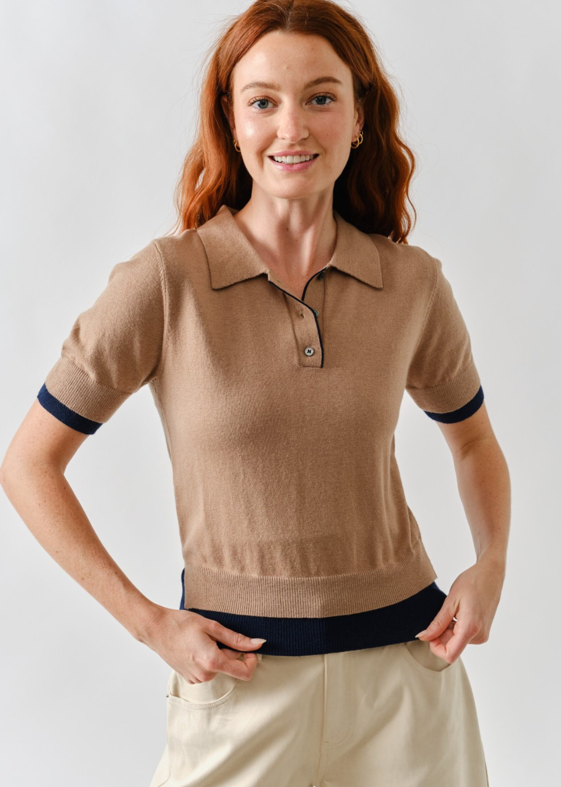 Description: A modern twist on a timeless classic. This short sleeve knit polo features contrast trim at the hem and sleeves, creating a subtle layered...