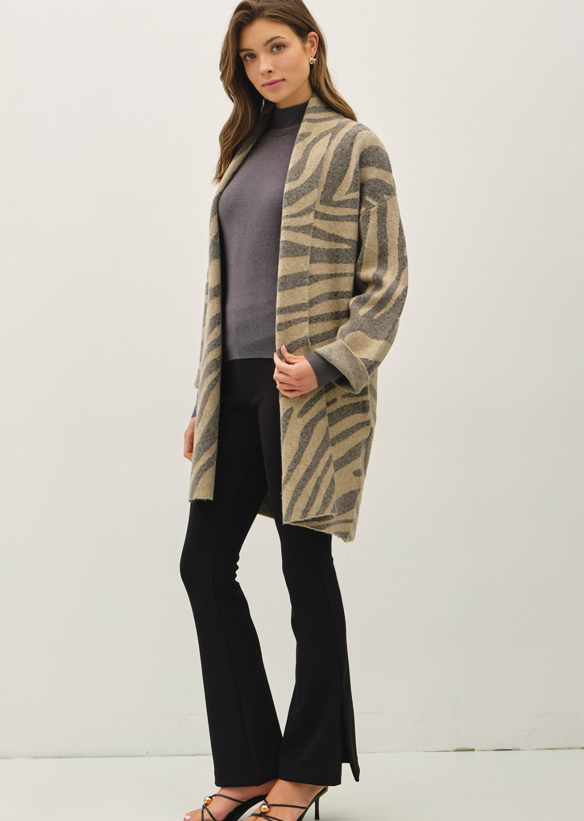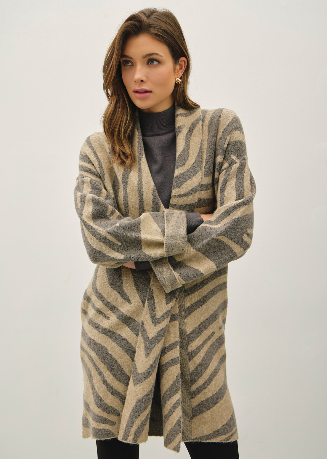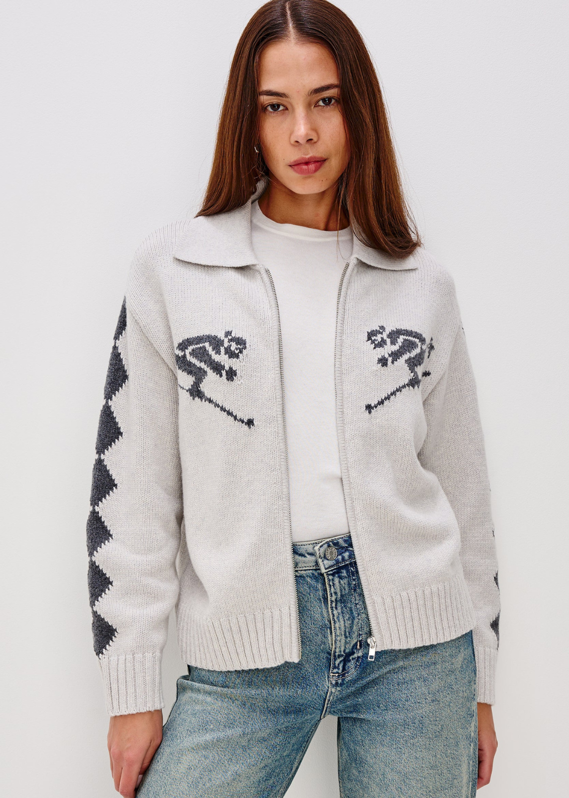 Description: Knitted from a sumptuous wool blend, the Rhea is a longline zip-up cardigan with a relaxed fit, featuring a stand collar, ribbed trim, playful...