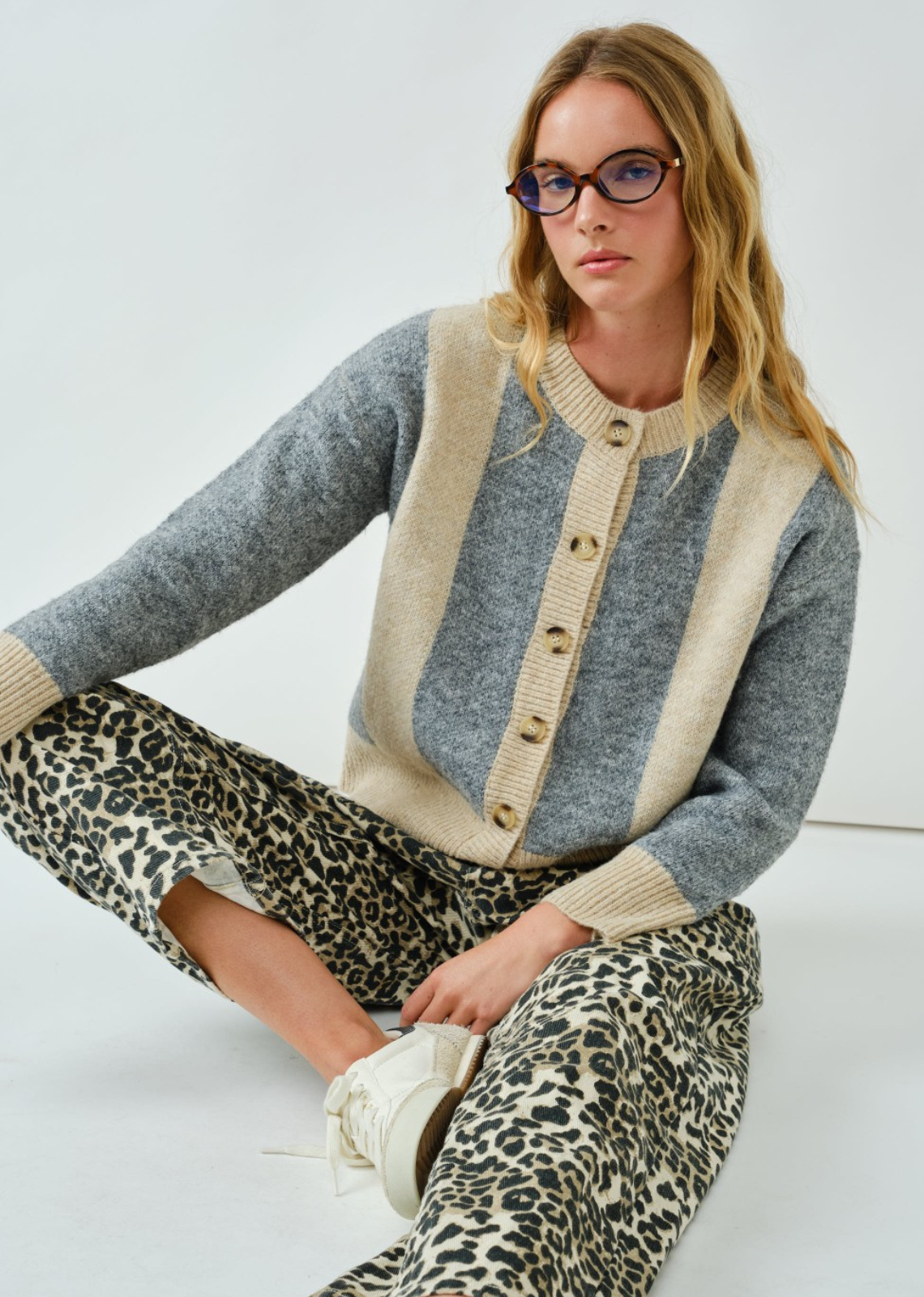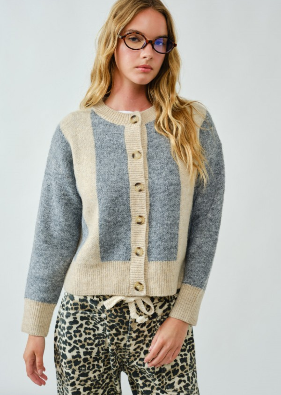 Description: Bold, contemporary, and effortlessly versatile — the Carrie Colour Contrast Cardigan is a standout layering piece for any wardrobe. Crafted from soft, comfortable knit,...