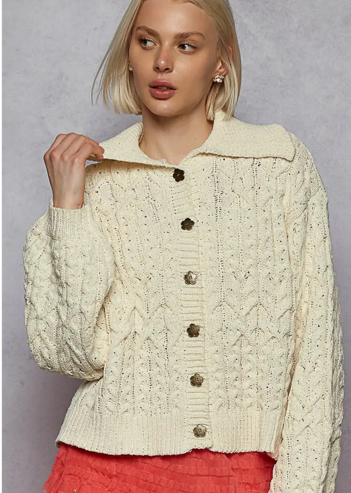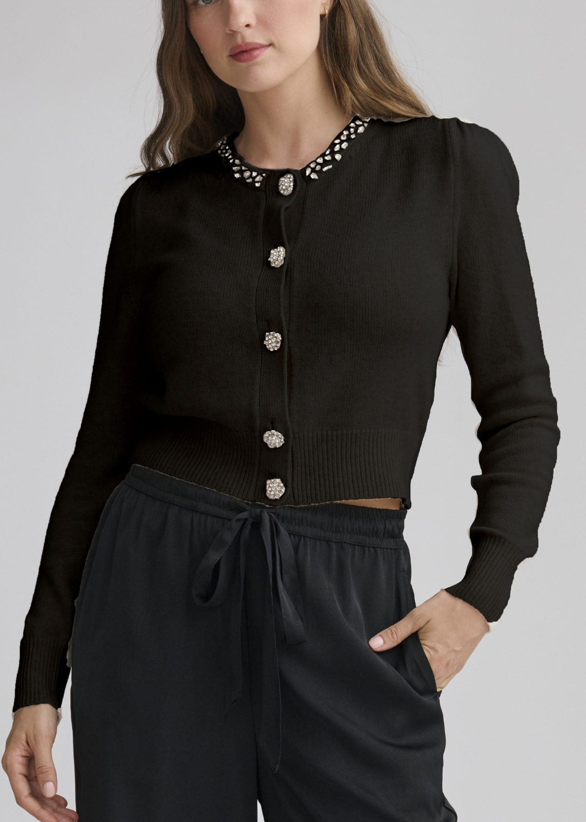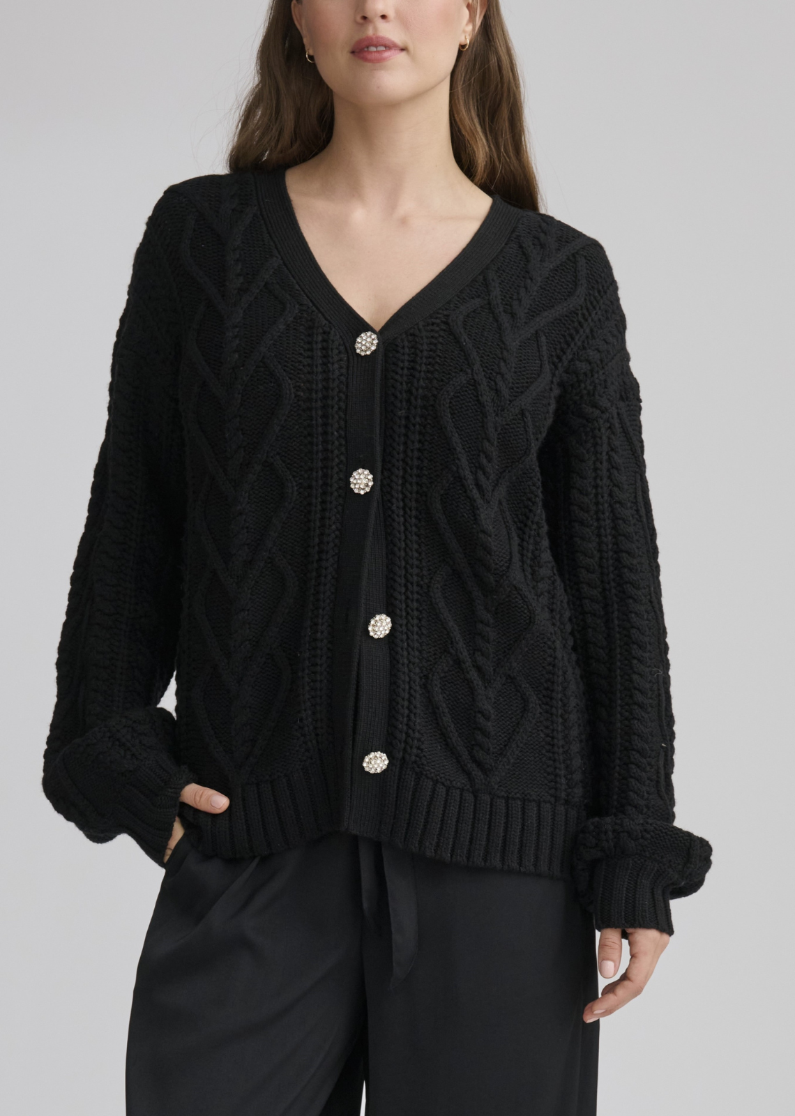 Description: A classic cable knit cardigan with some pearl & jewel details throughout! Pairs perfectly with a jean, trouser or skirt for any occasion! Additional...