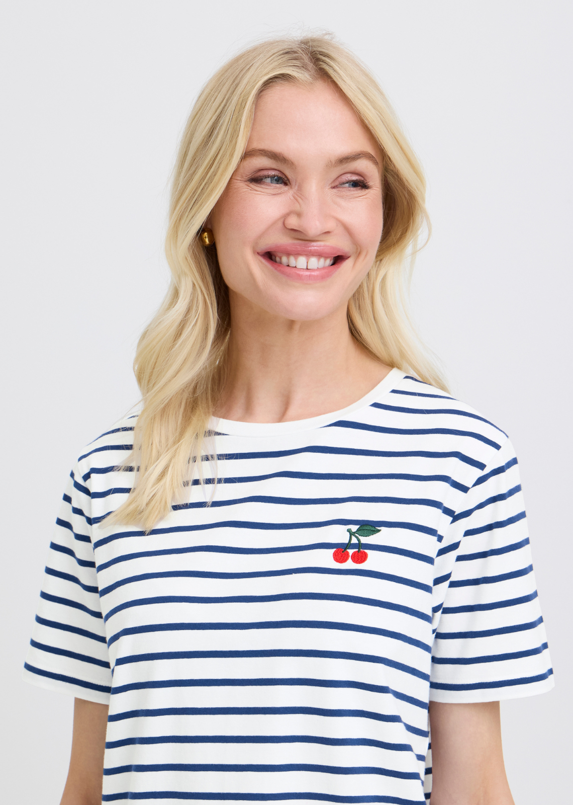 Description: This straight-fit T-shirt features a classic crew neckline and short sleeves. A small cherry embroidery is visible on the chest, adding a subtle detail....