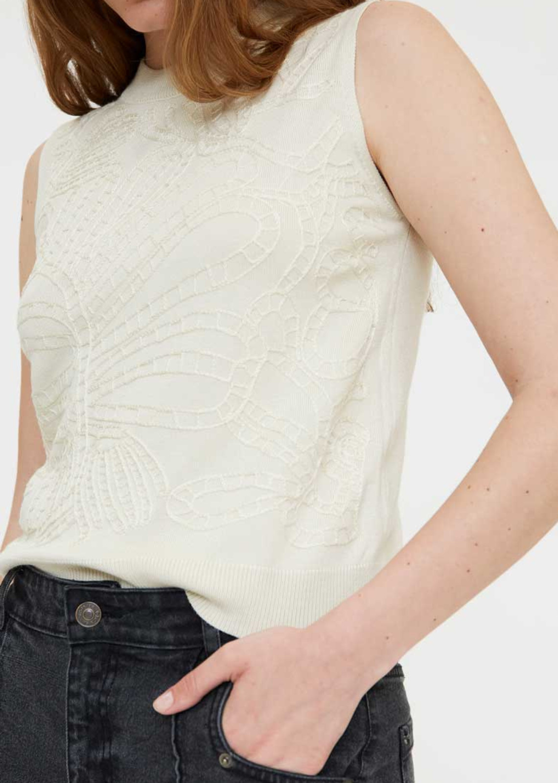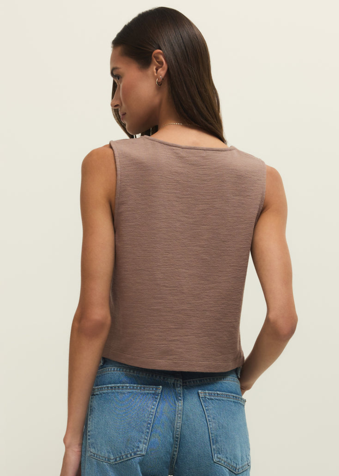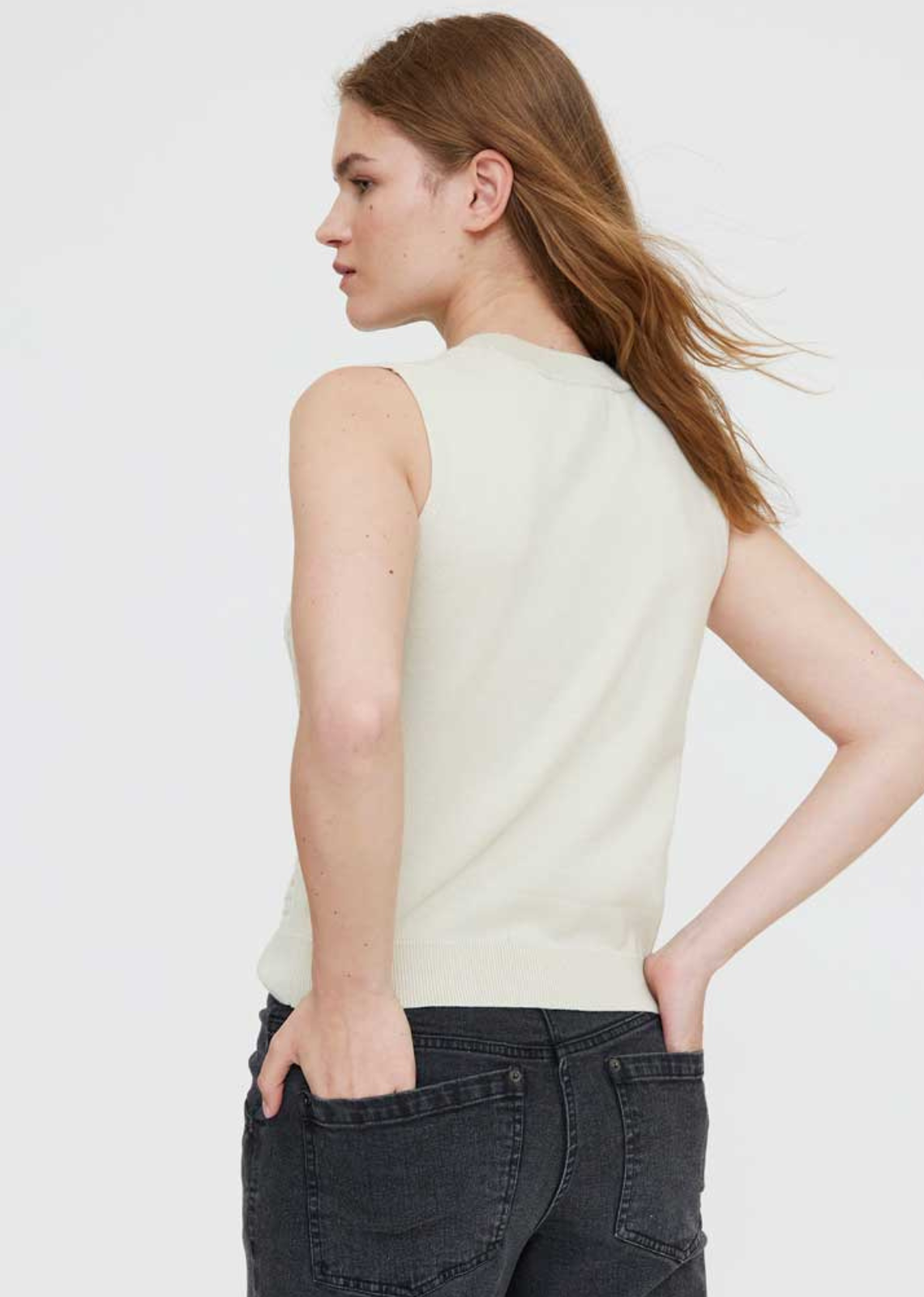 Description: Detailed with a button front, v-neck, and lightweight textured knit fabric, this sleeveless top will be a forever staple in your wardrobe. Make it...