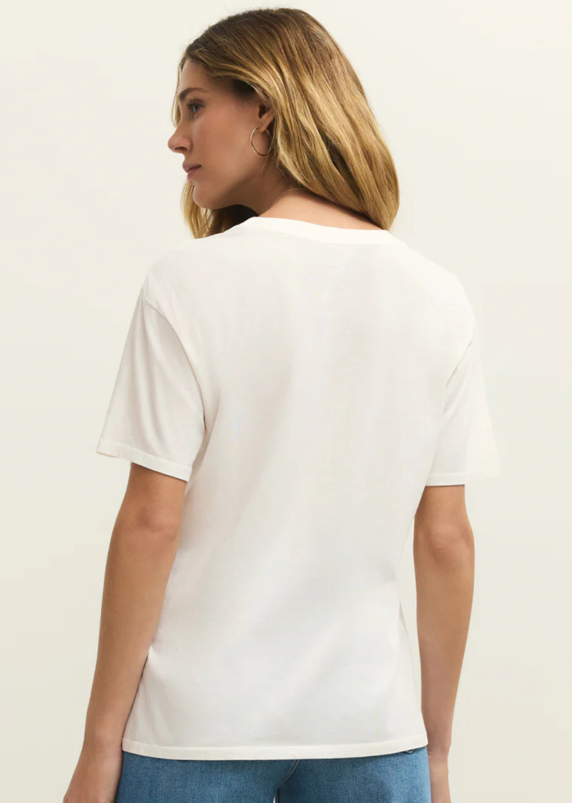 Description: Easy, effortless, and made with love. This soft white tee features a subtle heart graphic at the front, filled with delicate text detailing for...