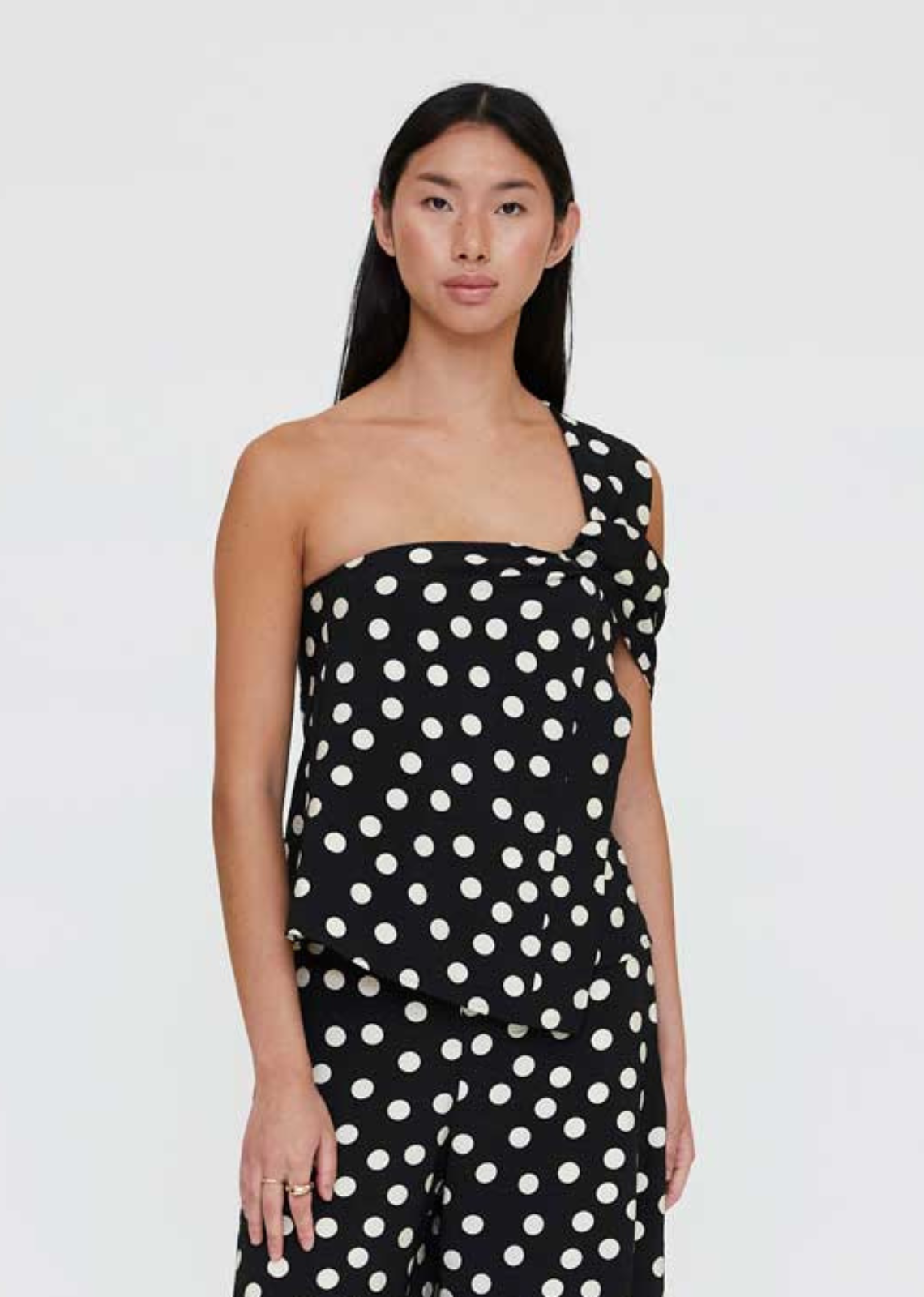 Description: The Stephanie Top is a timeless classic with a playful twist. Featuring an all-over polka dot print, this top offers a flattering, easy-to-wear silhouette...