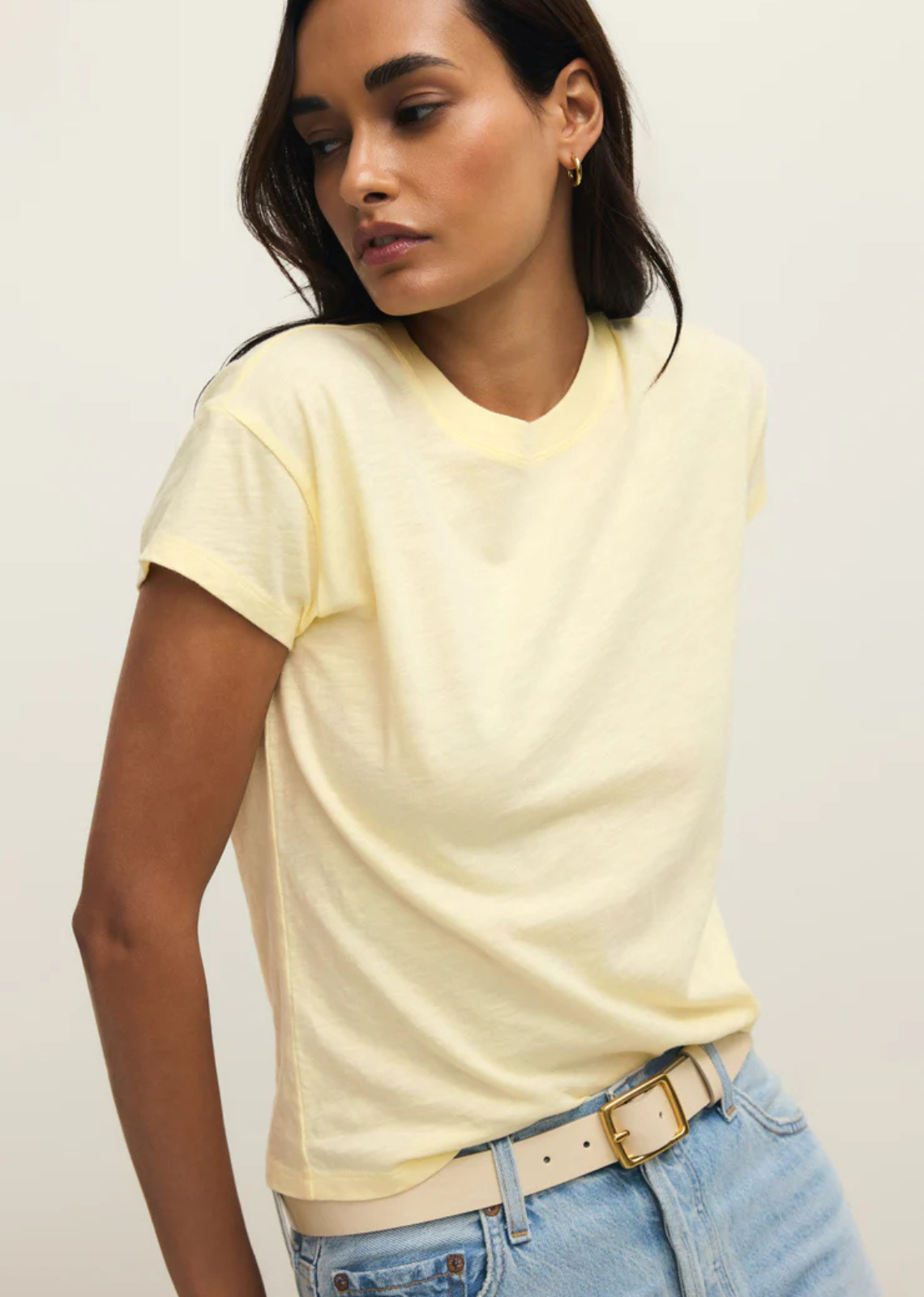 Description: The perfect essential for any collection, this staple tee features a lightweight cotton-blend fabrication and an easy, relaxed silhouette for endless styling options. Additional Information: ...