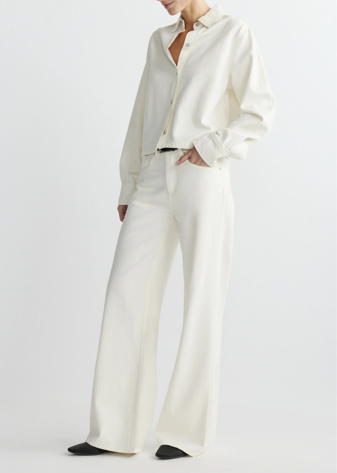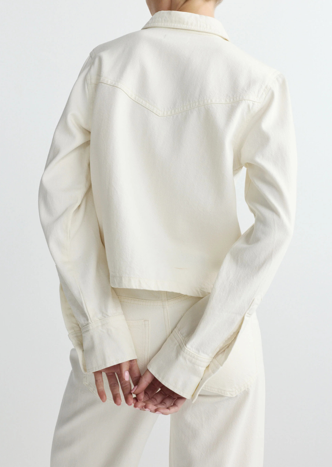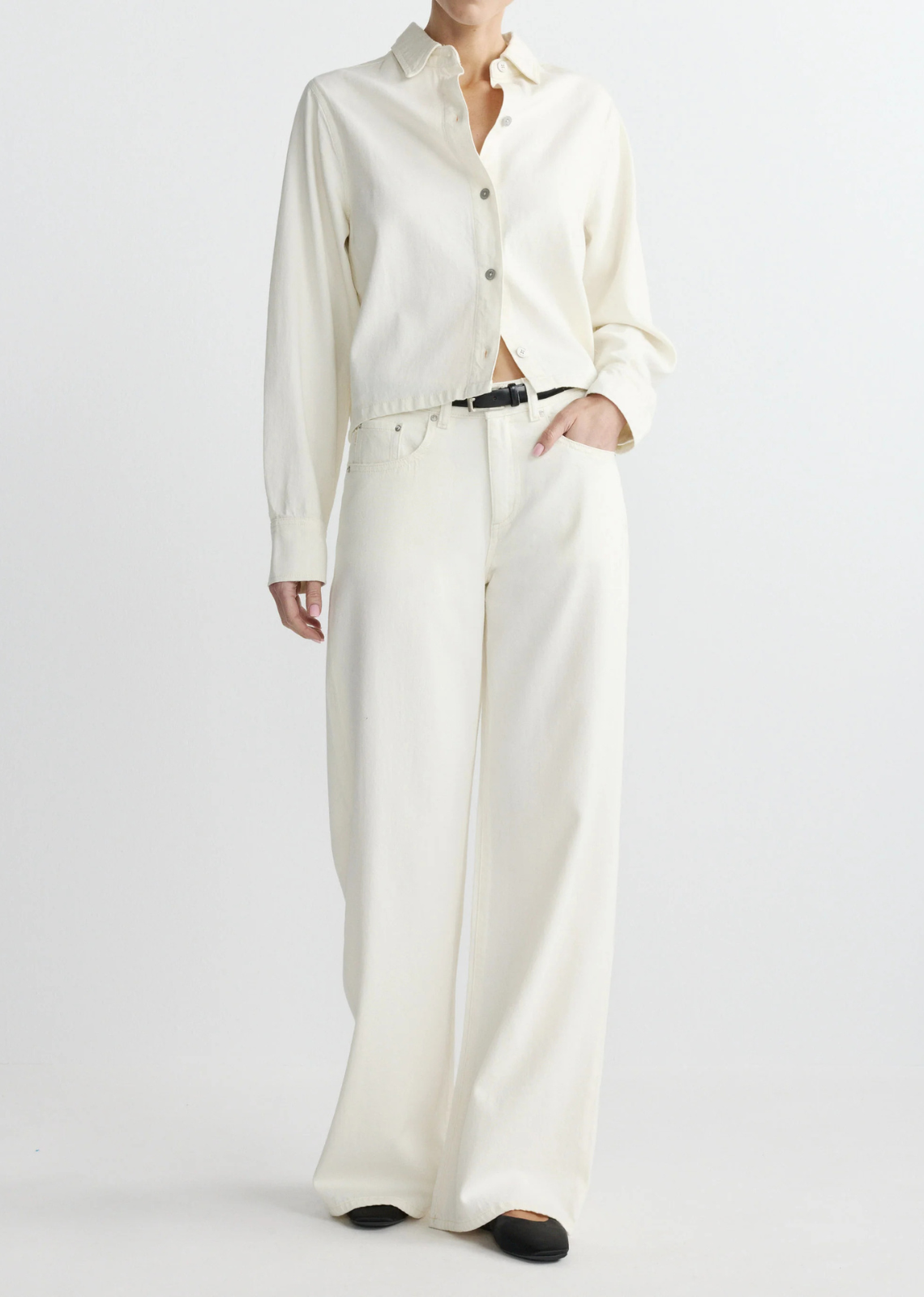 Description: Montauk is a long sleeve, button down shirt with a boxy fit that is subtly cropped. Eggshell is a soft white denim. It features...