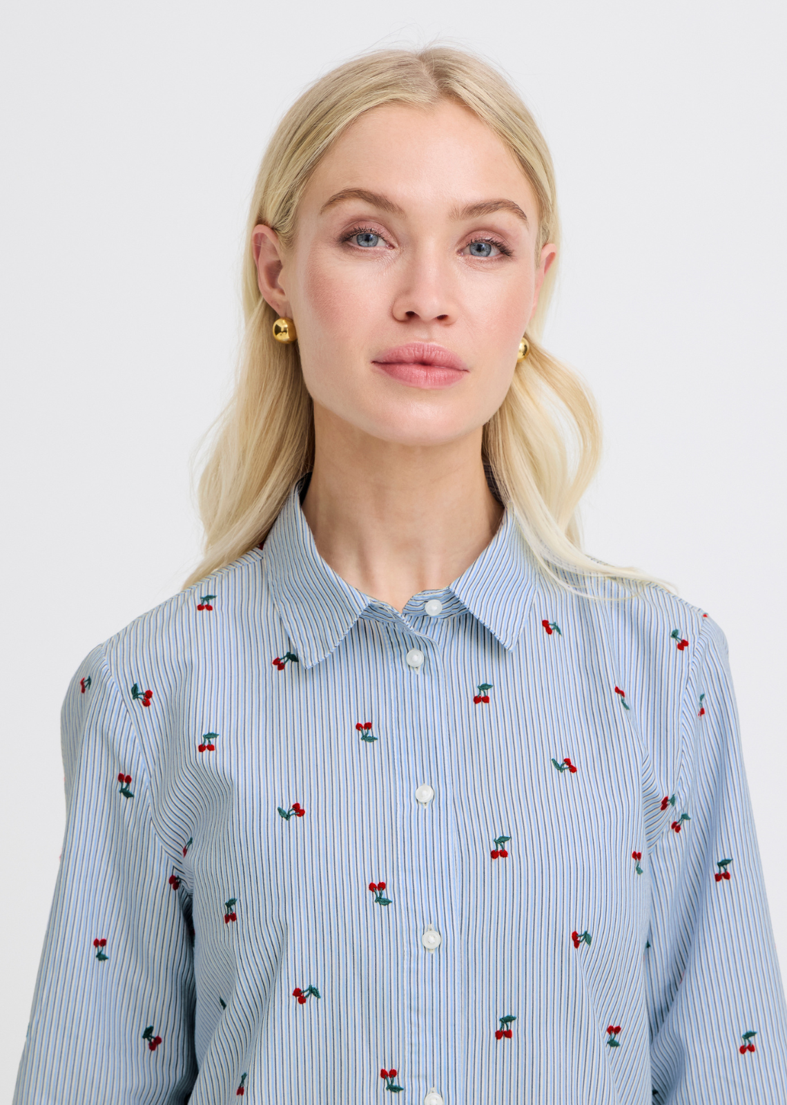 Description: Button-down shirt with a straight fit, full-length sleeves, and classic pointed collar. Features buttoned cuffs and a curved hem. The fabric has a smooth...