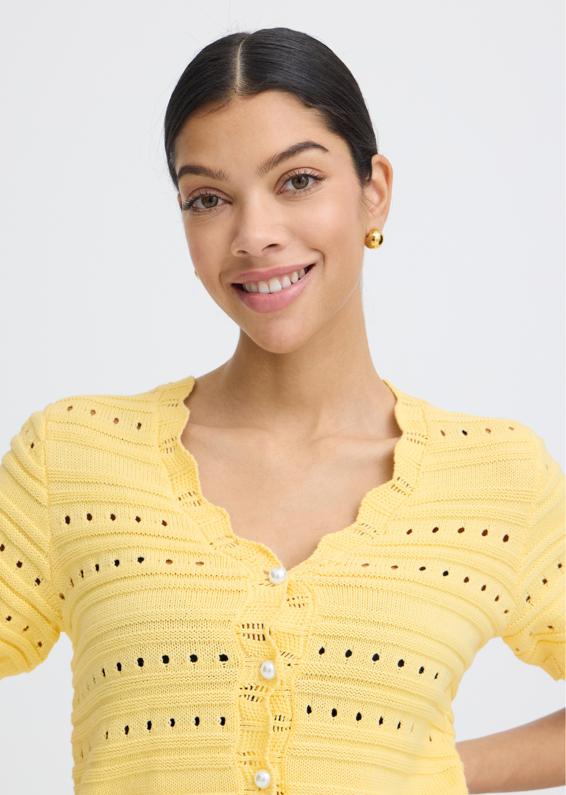 Description: Cotton short sleeve cardigan with pearl button details. Available in white & light yellow. Additional information: 100% Cotton 20818889