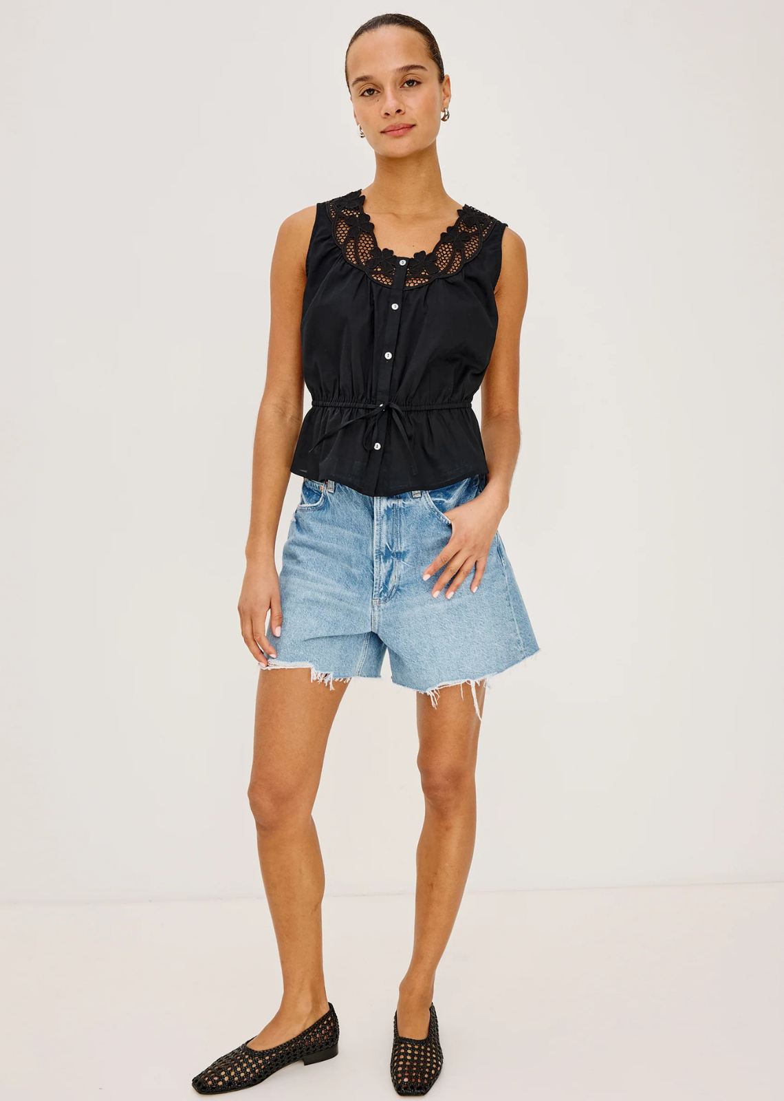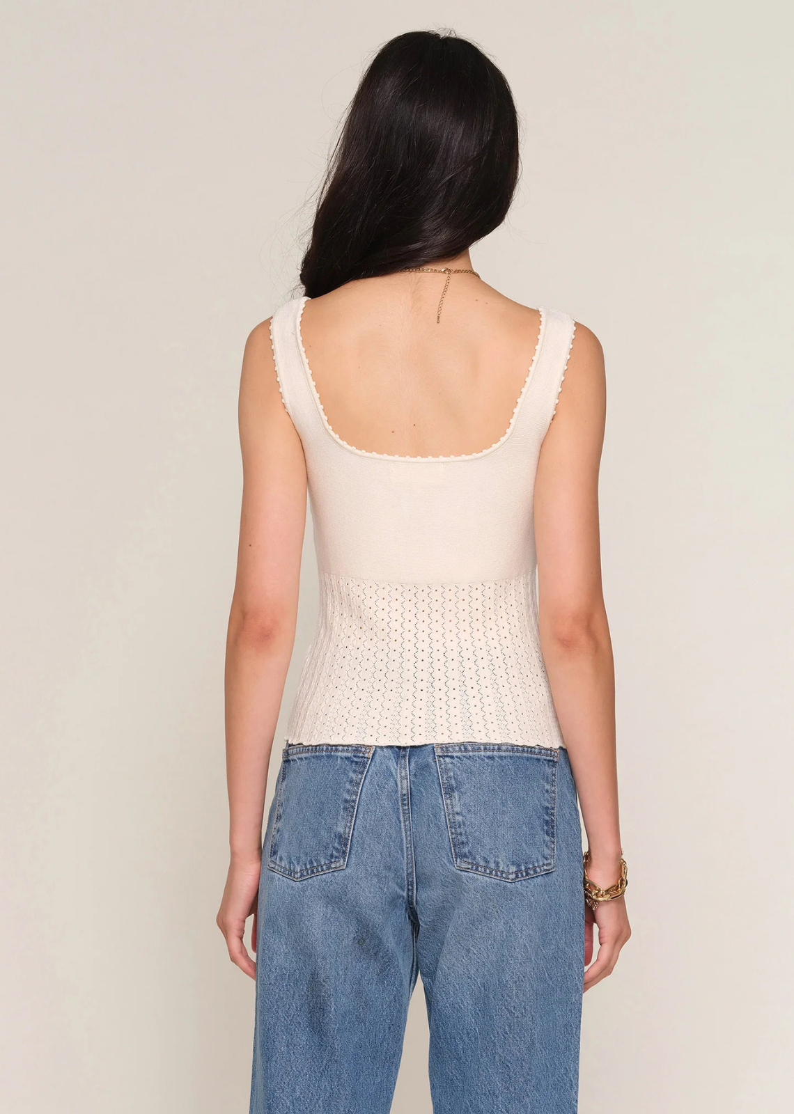Description: A lightweight, fine-rib cotton tank top with a classic crew neckline and delicate eyelet detailing along the edges. Easy, breathable, and feminine, this cotton...