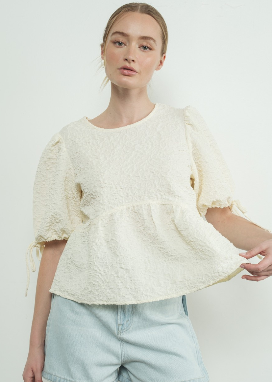 Description: This top features a textured fabric with a slight crinkle effect, giving it a unique, vintage-inspired look. It has a round neckline and loose,...
