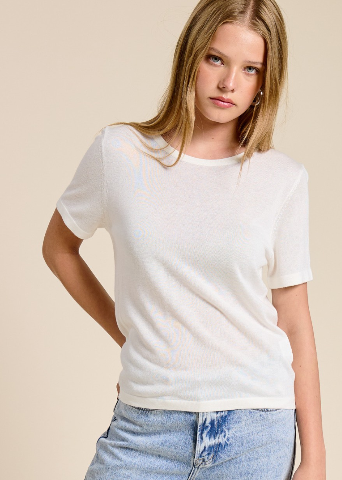 Description: An elevated essential for everyday wear, this short sleeve knit tee is crafted from a premium lightweight yarn blend featuring Superfine Merino Wool. The...