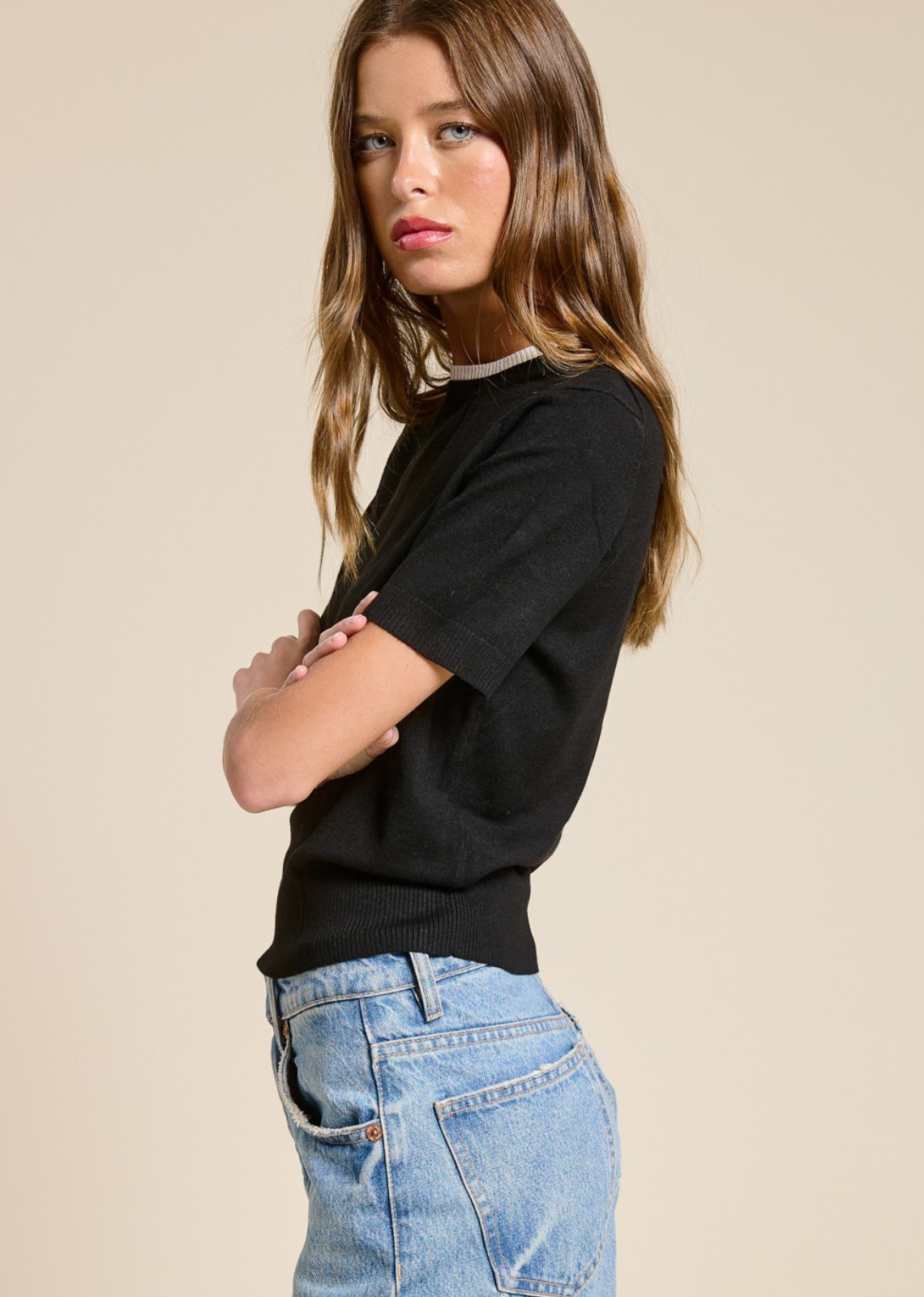 Description: This refined knit tee is crafted from premium Viscose, offering a unique blend of subtle sheen, breathable weight, and a fluid drape. Featuring a...