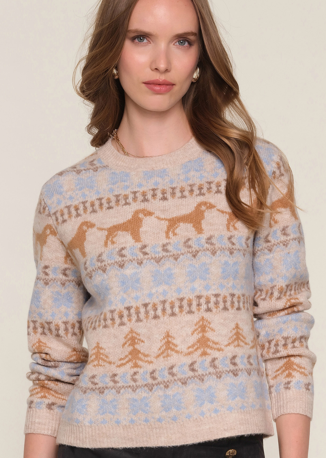 Description: The Priya Sweater by Heartloom is a cozy, playful knit featuring an adorable dog-inspired pattern throughout. Soft and stylish, it pairs perfectly with denim...